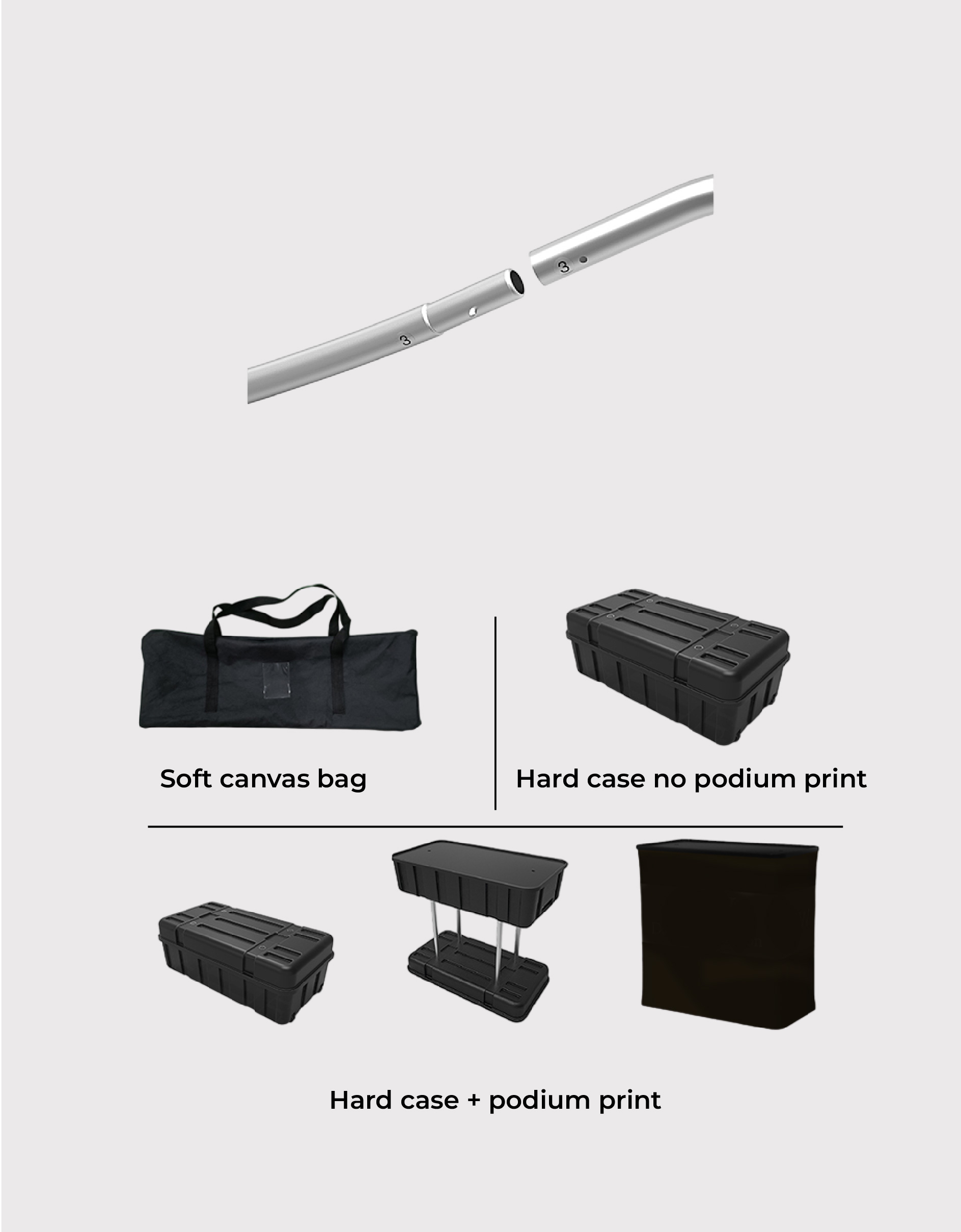 Our Tension Displays consist of a lightweight but durable aluminum hardware and a Fabric Dye-Sublimated Print. The hardware is inserted inside the print, much like a pillow into a pillowcase. The fabric print is stretched tight across the frame and zipped close.