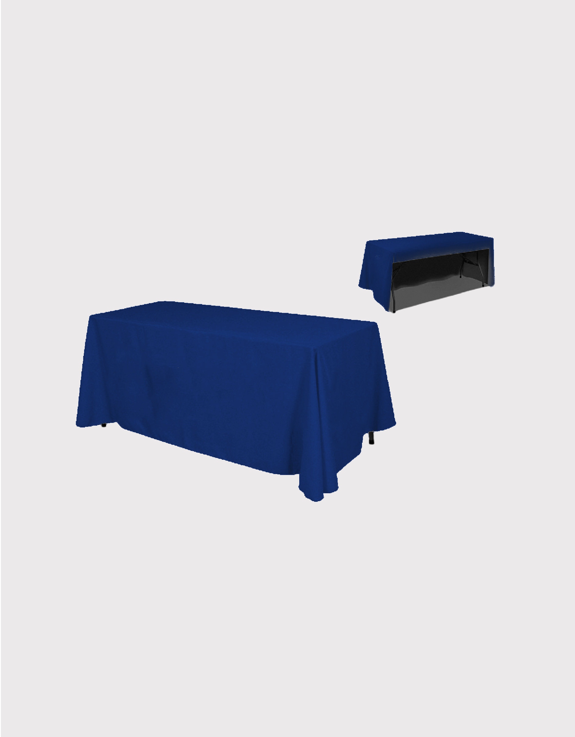 Our standard table cover is a great table topper for trade shows, exhibitions, and any presentations. Our table covers are dye sublimated and are 100% washable if it ever gets dirty. This table cover is made from our 8.8 oz. polyester table fabric that drapes over 3 sides of a 48″ x 30″ x 30″ display table. The table cover is sewn with rounded corners and hang approximately 2″ above the floor. Complete your presentation with our simple and cost-effective table cover.