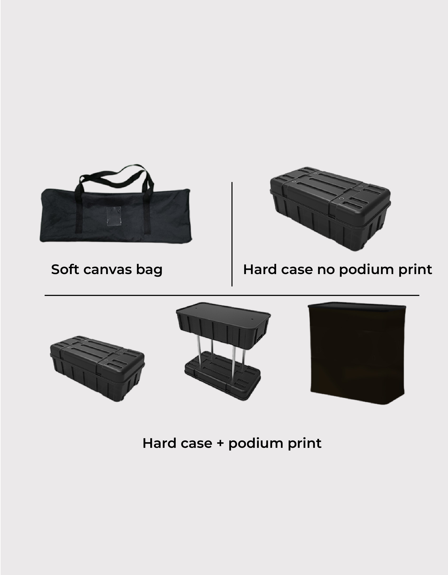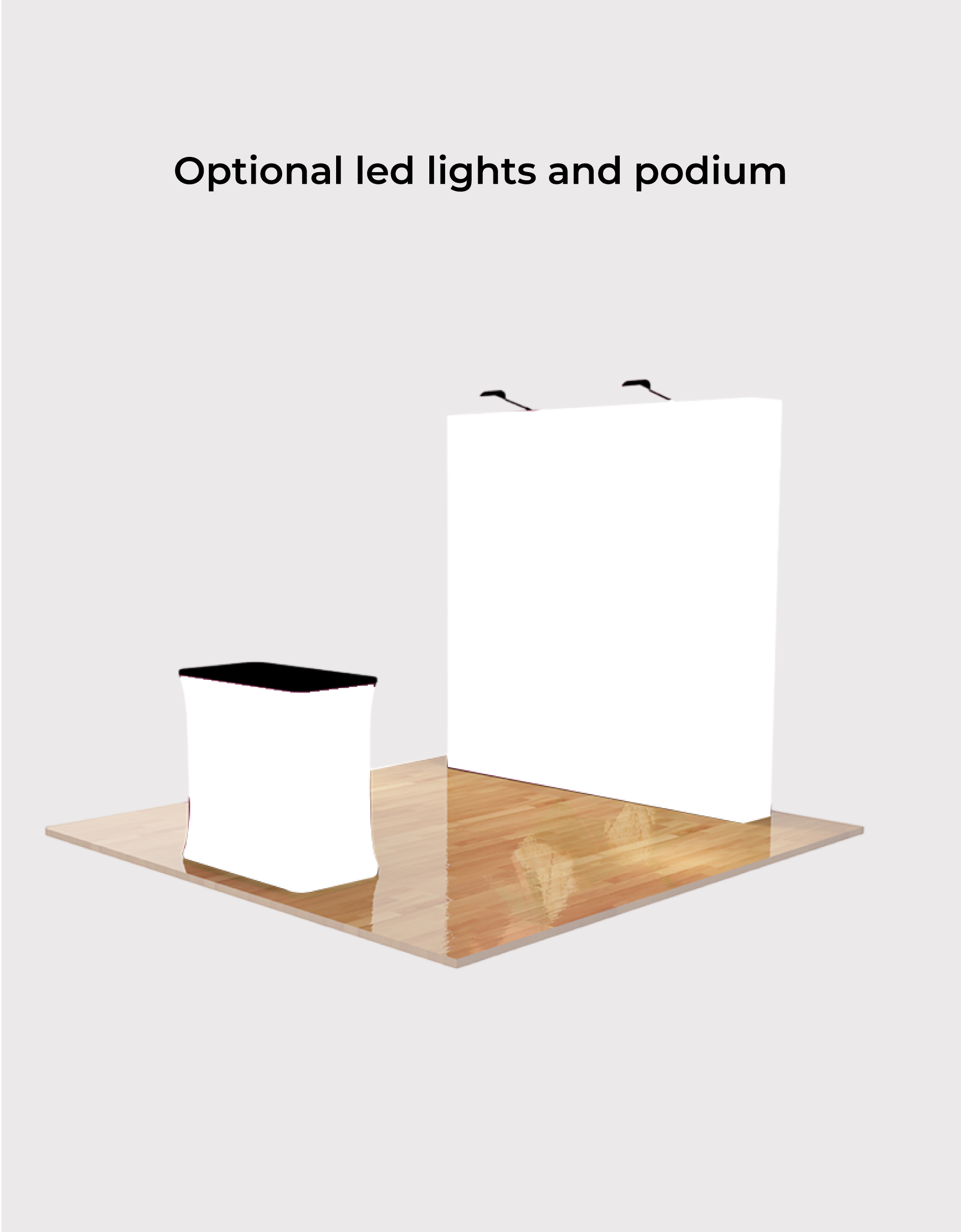The pop-up display is so quick and easy to assemble with its pop-up mechanism. Attached fabric graphic on to the pop-up frame with Velcro, and folded along with the frame for storage or transport. When your next show comes around, simply expand the pop-up frame, and your graphic will expands with it.
