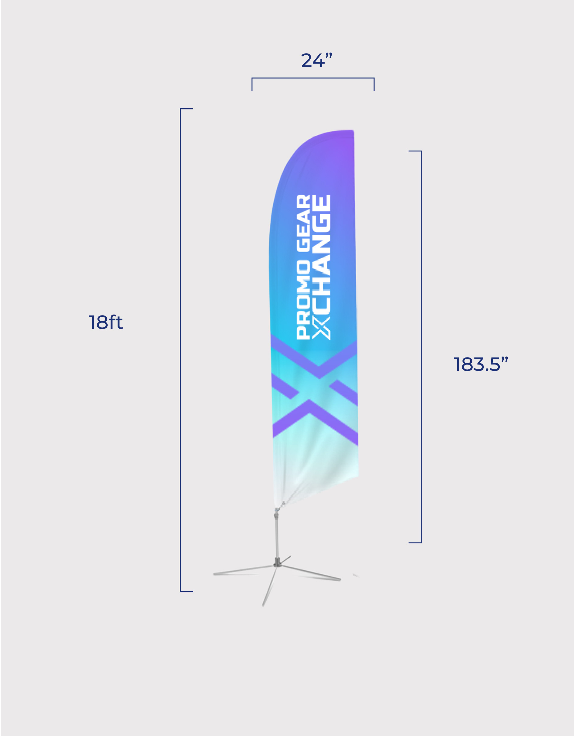 The Feather Angled Flag is suitable for indoor and outdoor events. Effectively advertise your logo or message with our x-large feather angled flag. Available hardware options including a heavy duty cross base or ground stake to fit to your pole set.