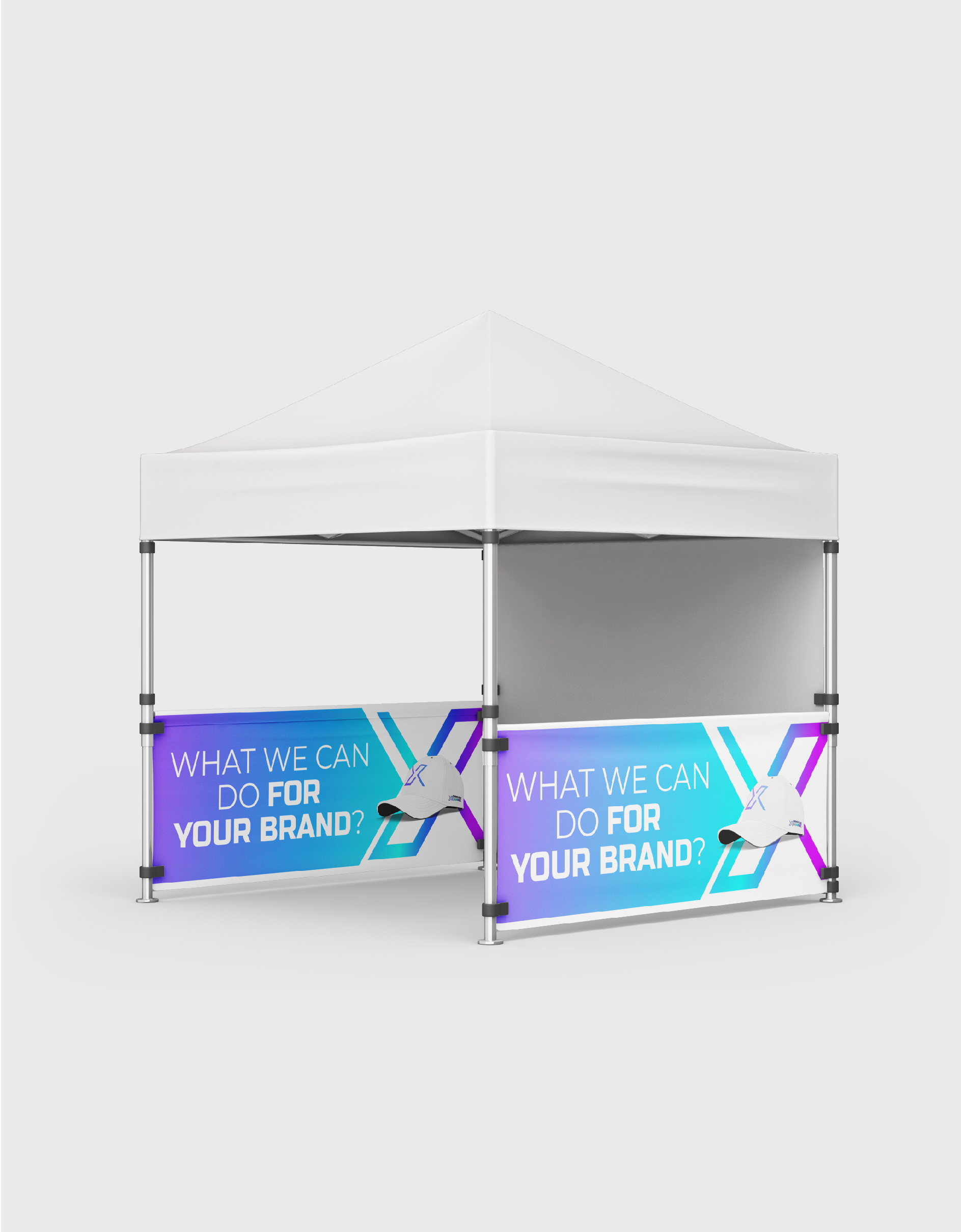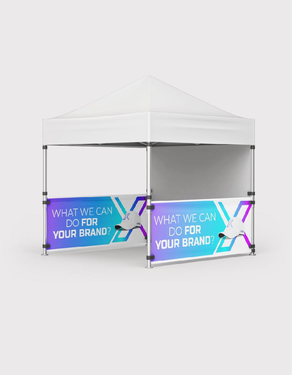 Full Wall Tent Graphics add the perfect backdrop for your outdoor display. Full wall graphics attach at the bottom of the canopy and extend to within 4 inches of the floor. The full color dye-sub graphic offers another dimension of event tent branding as well as a possible wind break for outdoor setups.